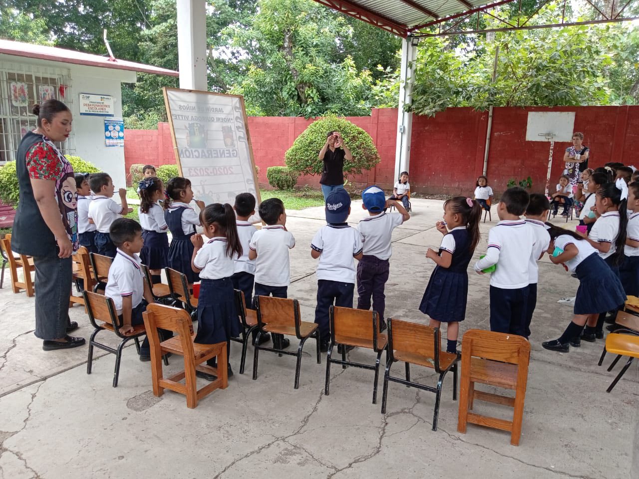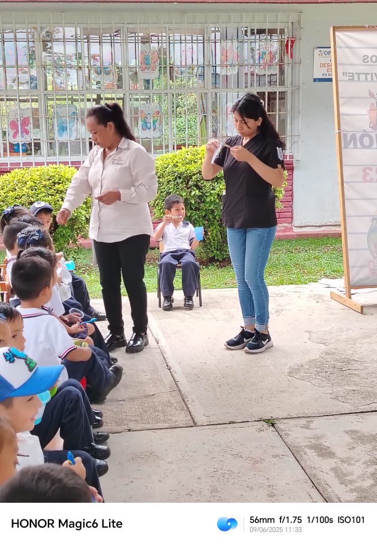 Para prevenir y cuidar la salud bucal de las niñas y los niños, se llevó a cabo una plática con el tema de enfermedades bucales y técnica de cepillado en el Preescolar “Noemí Quiroga Vite” de la junta auxiliar de San Antonio Ocopetlatlán, por parte de la Coordinación de Salud del DIF Municipal.