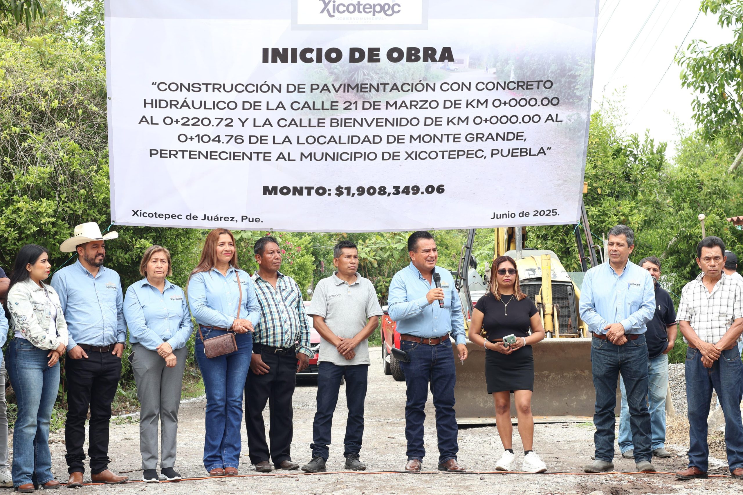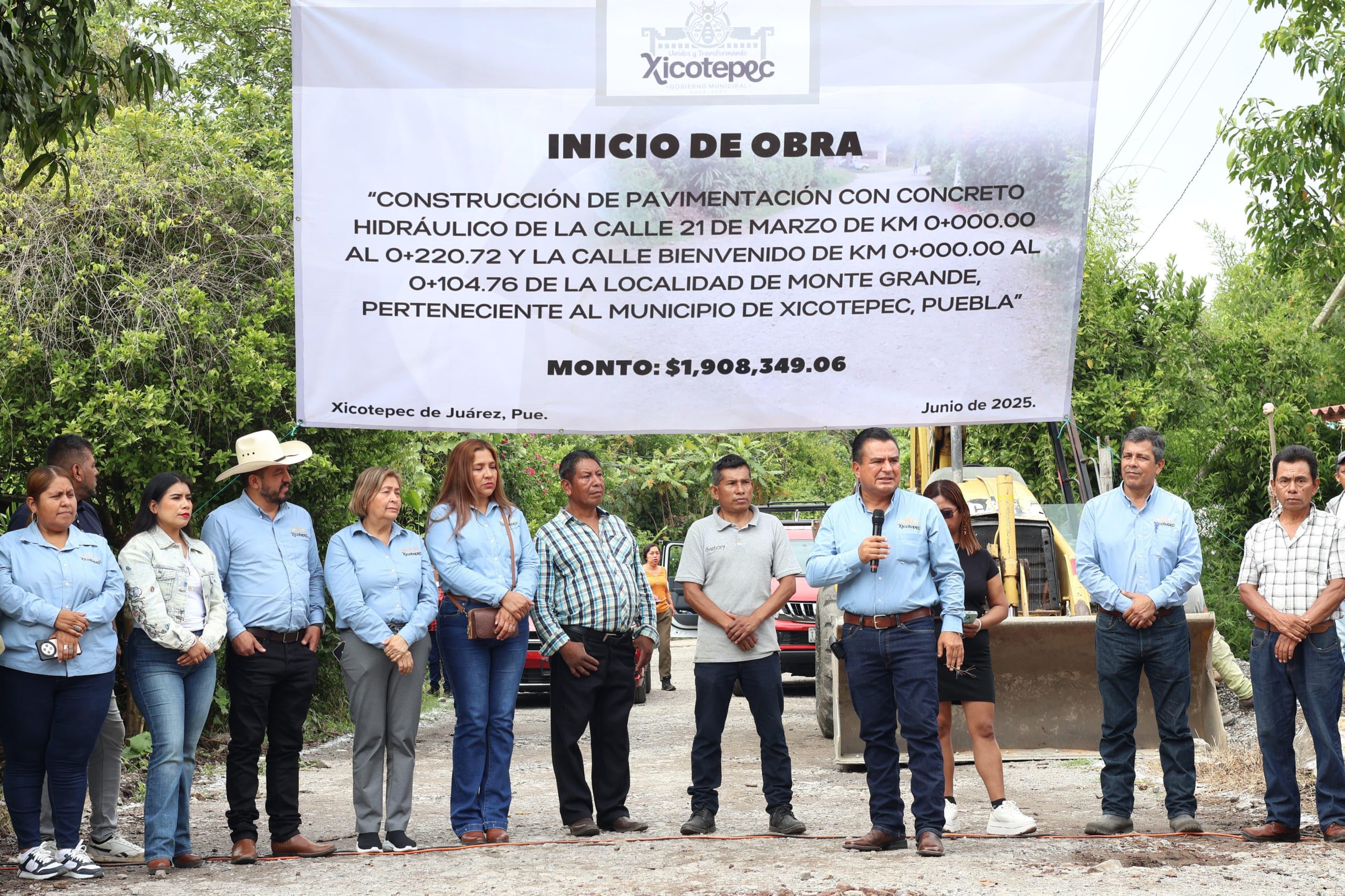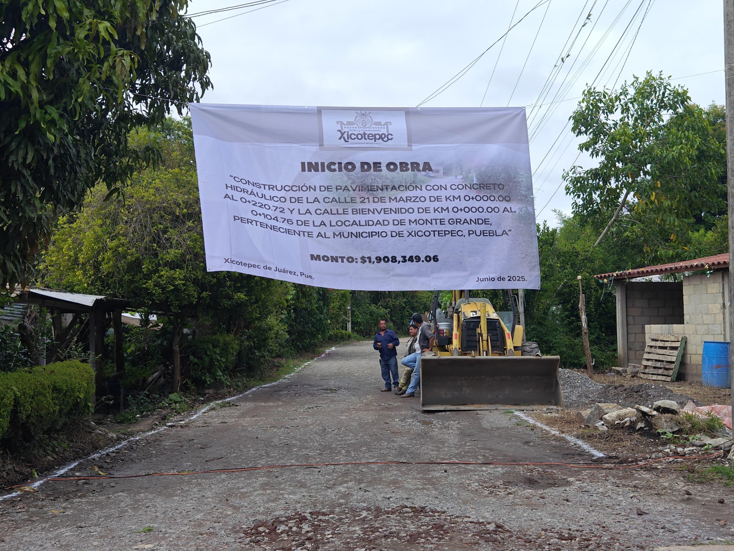 Con una inversión de 1, 908, 439 pesos del Fondo de Aportaciones para la Infraestructura Social Municipal (FAISMUN) 2025, el Presidente Municipal de Xicotepec Carlos Barragán Amador empezó la pavimentación de las calles 21 de marzo y Bienvenido de la comunidad de Monte Grande.