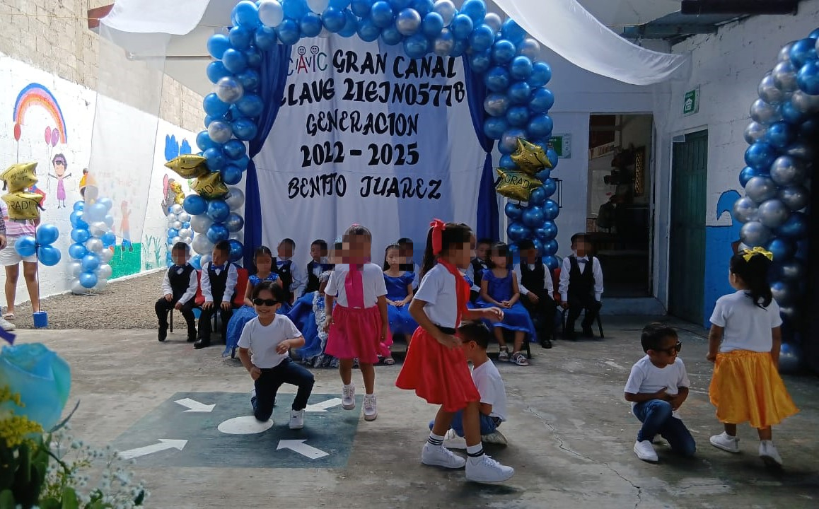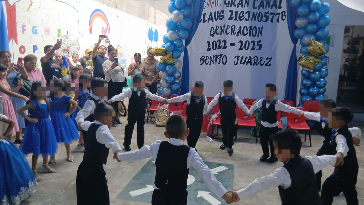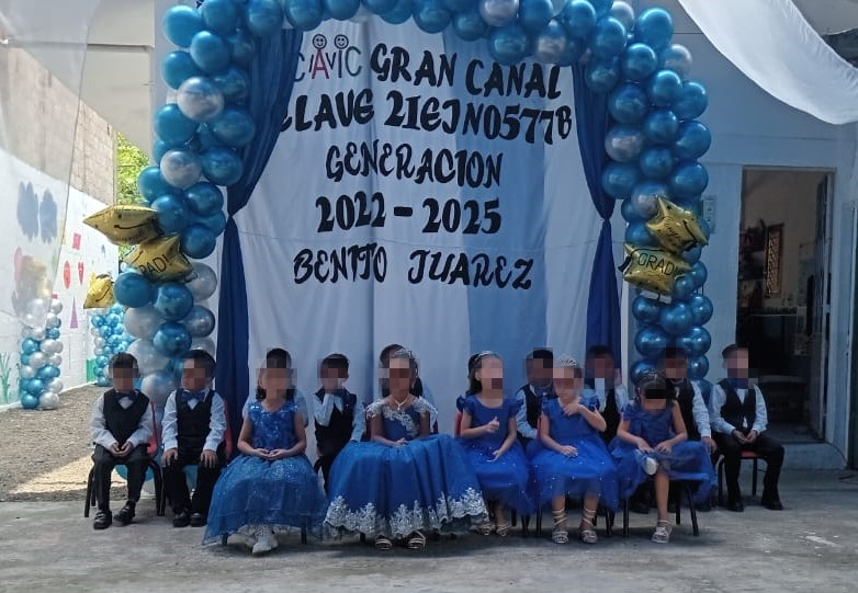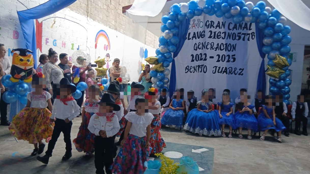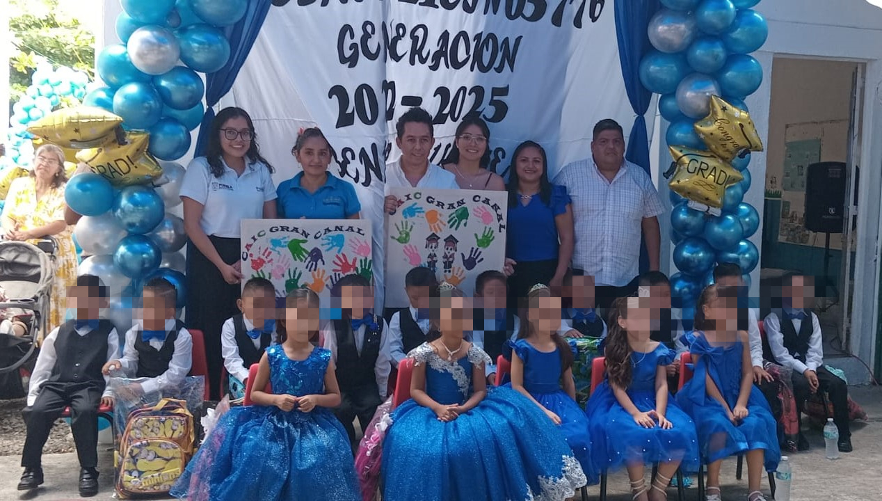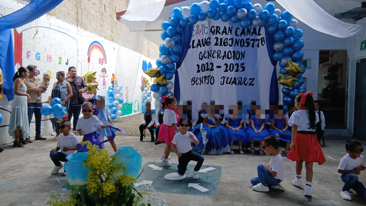 El Centro de Asistencia Infantil Comunitario (CAIC) “Gran Canal” en la junta auxiliar de Villa Ávila Camacho (La Ceiba) entrega a la Generación 2022-2025 “Benito Juárez” con sentimientos encontrados, pero con la satisfacción de haber compartido momentos inolvidables de su infancia.