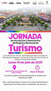 Turismo del Estado viene a Xicotepec a realizar la jornada de inscripción y renovación al Registro Nacional de Turismo.
