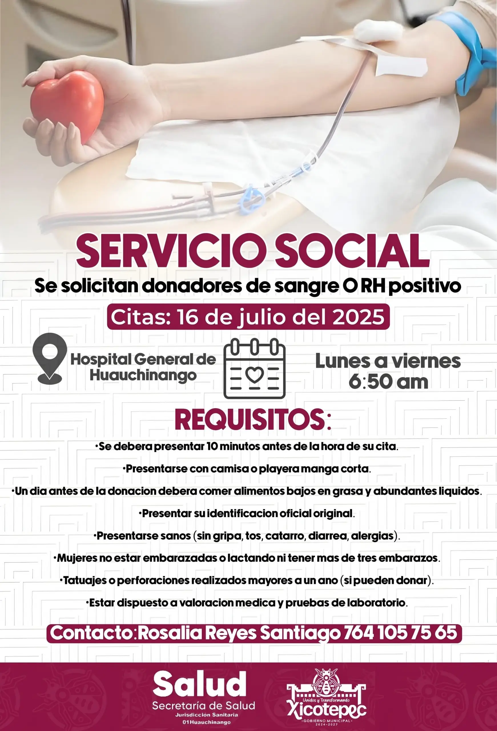 Publicado enBLOG SALUD SERVICIO SOCIAL, SE REQUIERE DONADORES DE SANGRE 15 julio, 2025 Pedimos tu colaboración para obtener donadores de sangre O RH Positivo. Consulta los requisitos y comunícate al número que aparece en la imagen para más información. ¡Es momento de ayudar! Comparte esto: Haz clic para compartir en Facebook (Se abre en una ventana nueva) Facebook Click to share on X (Se abre en una ventana nueva) X Haz clic para compartir en WhatsApp (Se abre en una ventana nueva) WhatsApp Haz clic para enviar un enlace por correo electrónico a un amigo (Se abre en una ventana nueva) Correo electrónico Navegación de entradas Entrada anterior RINDE PROTESTA EL CONSEJO CONSULTIVO MUNICIPAL DE TURISMO DE XICOTEPECSiguiente entradaXICOTEPEC, ANFITRIÓN DE MESA DE SEGURIDAD CON ORGANISMOS ESTATALES