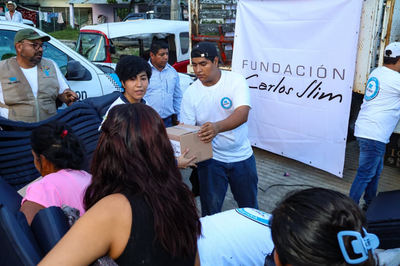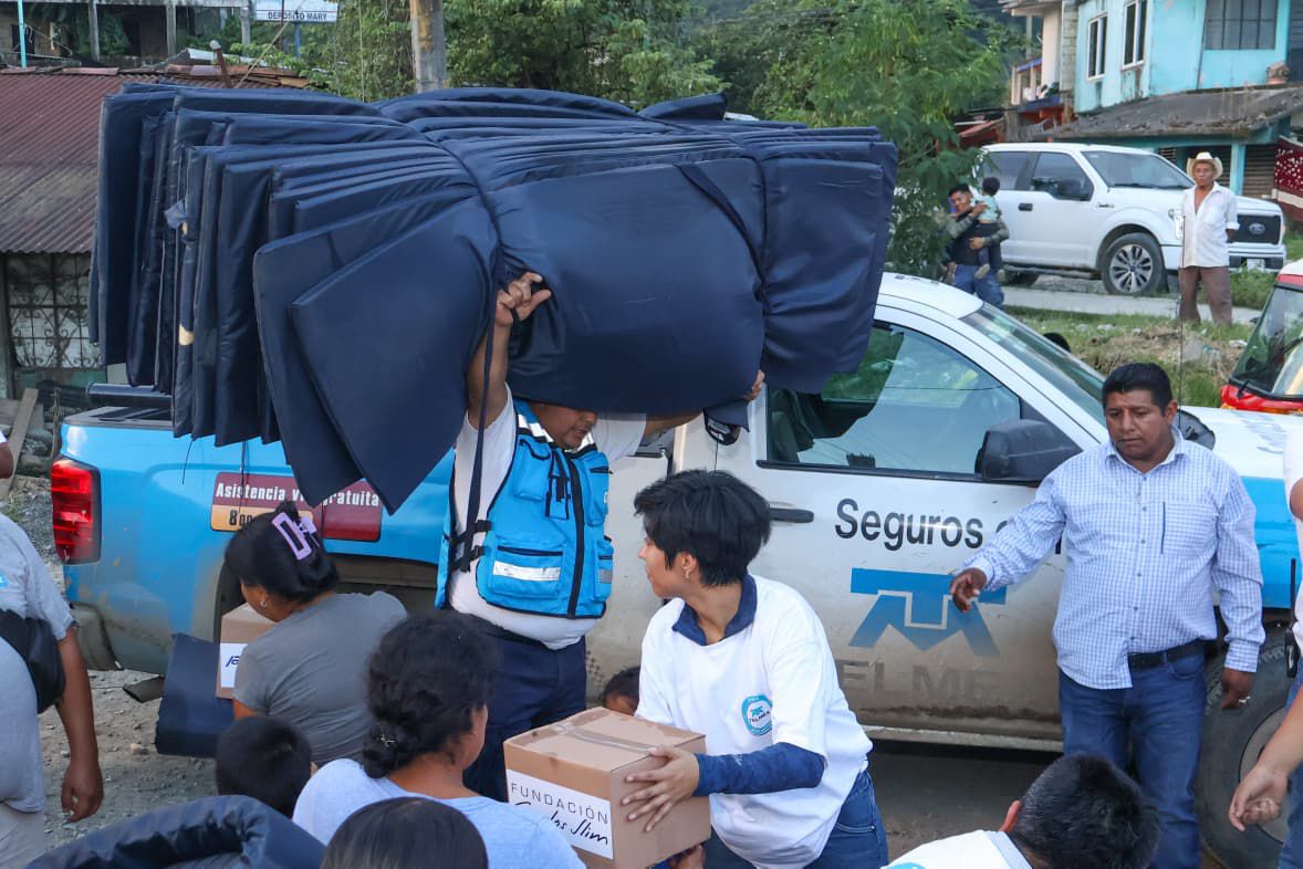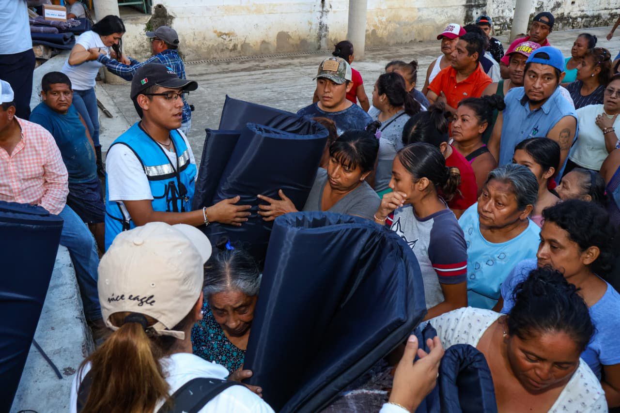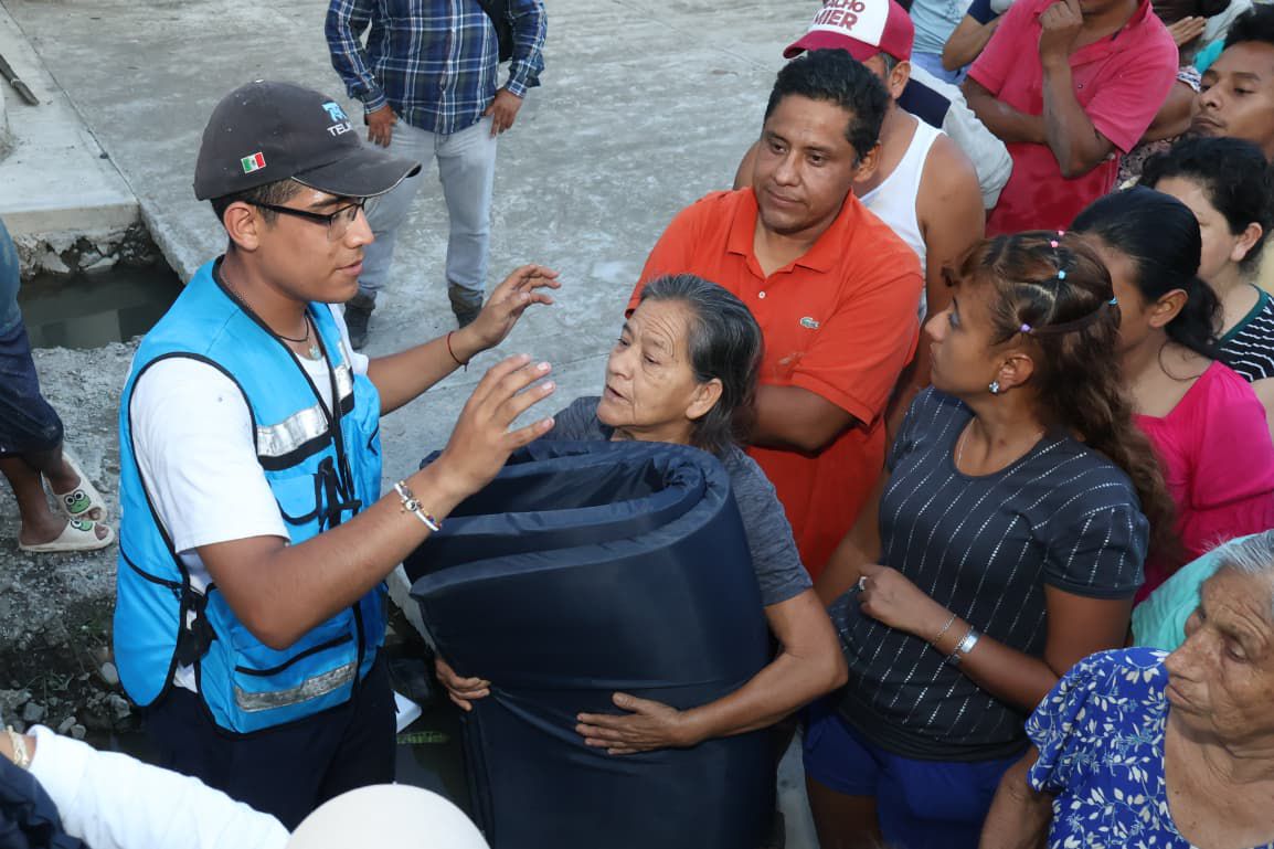 Derivado del apoyo de la Fundación Carlos Slim y TELMEX, se entregaron 350 kits que incluyen colchonetas, cobijas y despensas para habitantes damnificados de la colonia Cantarranas de la junta auxiliar de Villa Ávila Camacho (La Ceiba).