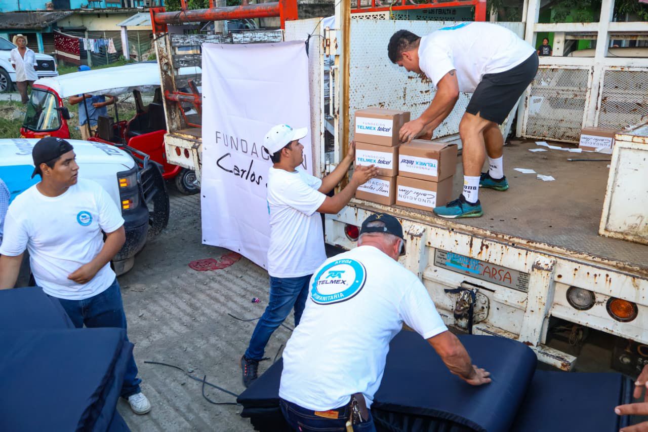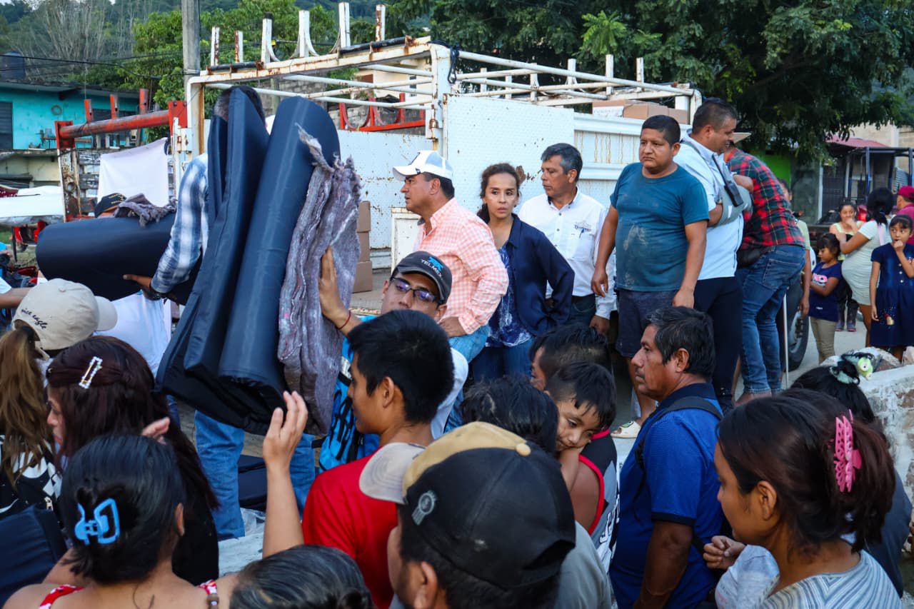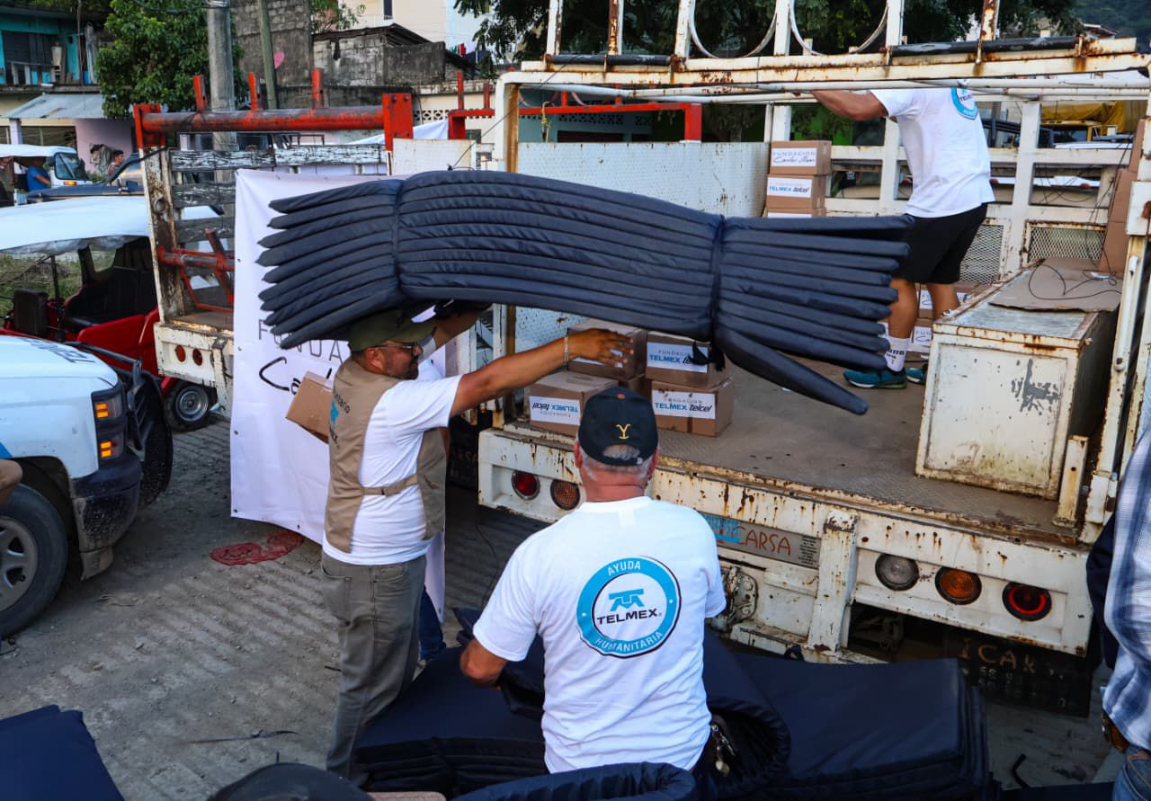 Derivado del apoyo de la Fundación Carlos Slim y TELMEX, se entregaron 350 kits que incluyen colchonetas, cobijas y despensas para habitantes damnificados de la colonia Cantarranas de la junta auxiliar de Villa Ávila Camacho (La Ceiba).