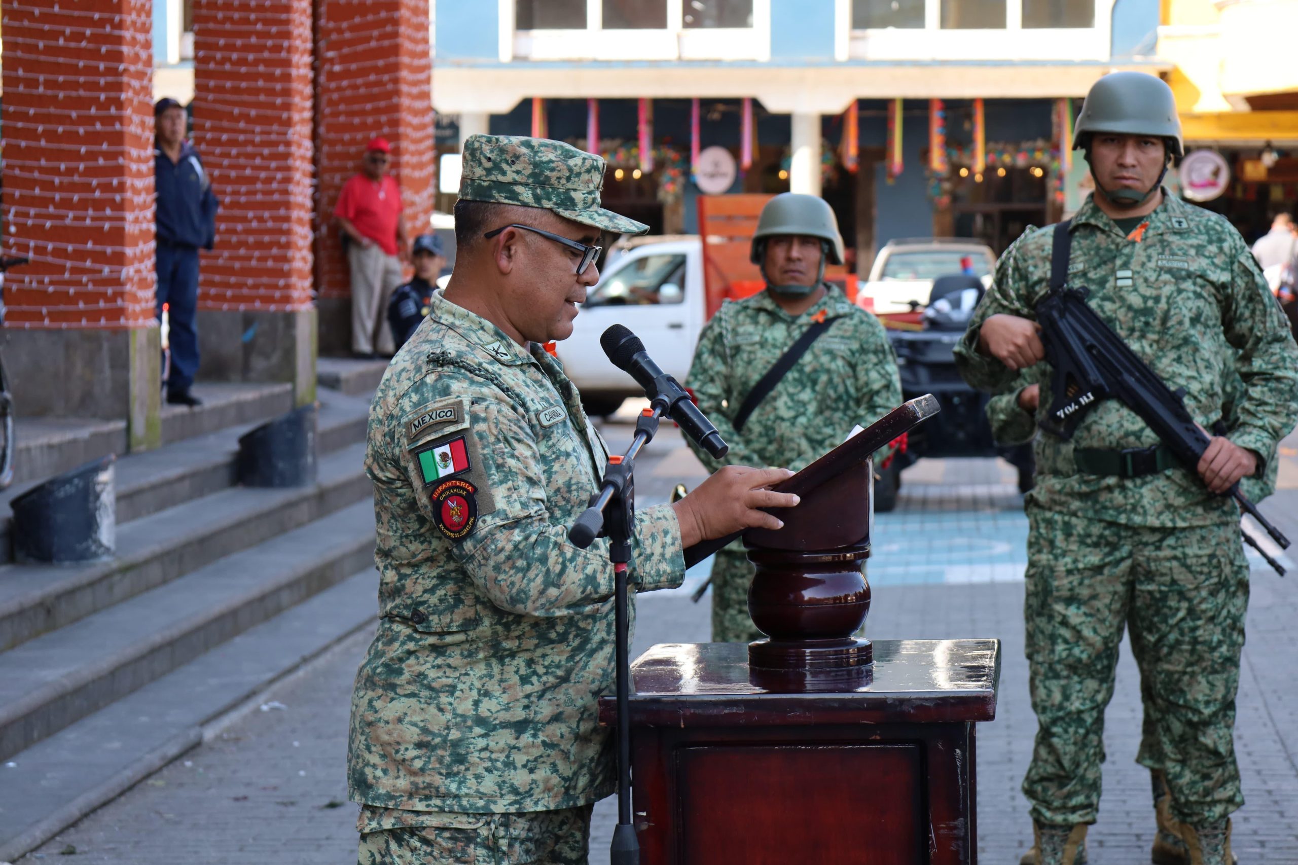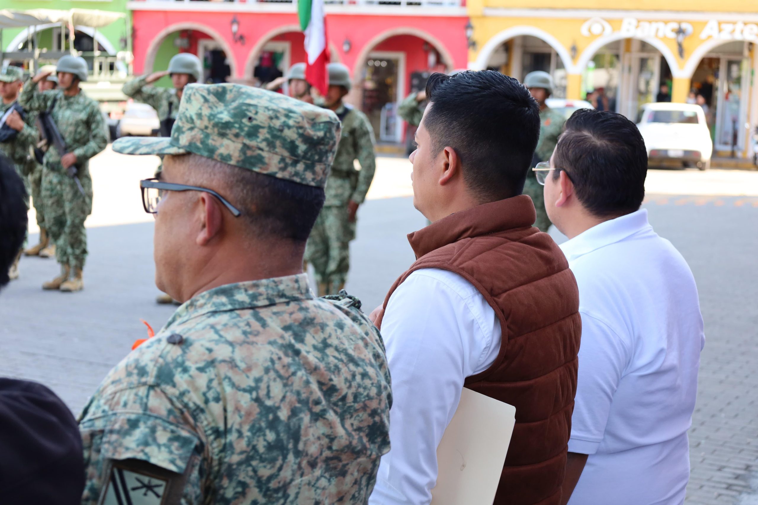 En representación del Presidente Municipal de Xicotepec Carlos Barragán Amador asistió el Secretario del Ayuntamiento José Domingo Santos Vargas, junto al Teniente Coronel de Infantería Sabino Victorio Carmona Miranda, regidores y síndica municipal, así como alumnos de Cecyte Plantel Xicotepec.